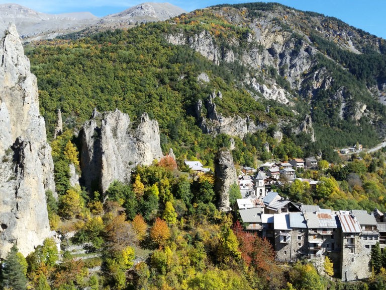 Au départ du très joli village médiéval de Péone, blotti au pied des demoiselles coiffées nous traverserons une forêt de pins avant de se retrouver sur une ligne de crête dans les mélèzes cuivrés. Une vue extraordinaire nous attend, elle surplombe la vallée du var jusque dans les gorges de Daluis au sud et plus en amont au nord, sur le col des champs.